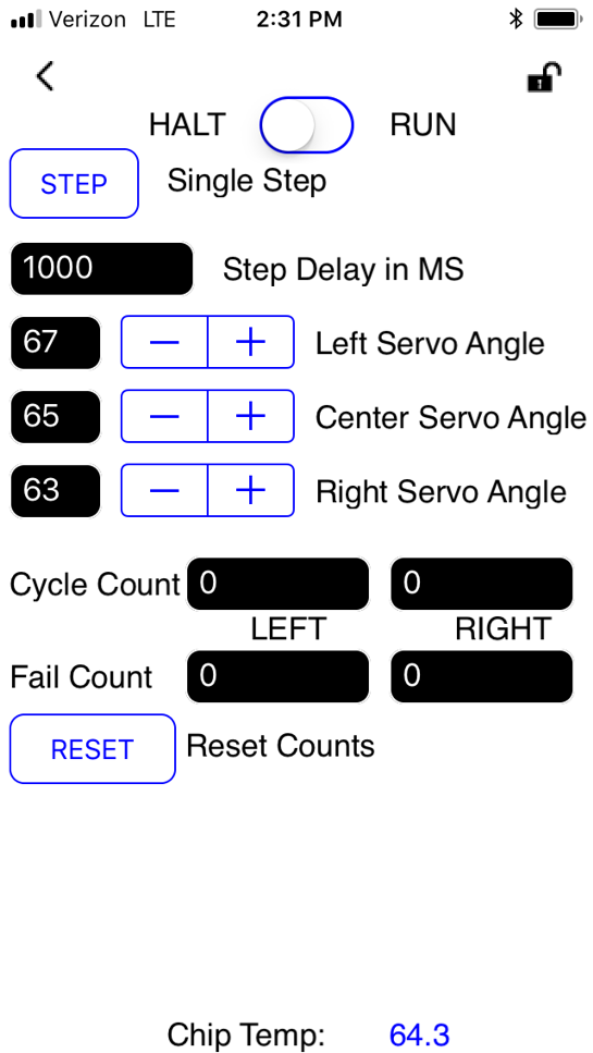 They were under a time-crunch and didn't have time to design this fixture themselves. We were able to complete the entire project in 3 days. Human interface was via cell phone. It had all provisions for controlling the speed of the test, servo travel and logged test results. Two switches could be tested concurrently allowing 200,000 cycles per day. Their testing could be done in a week.