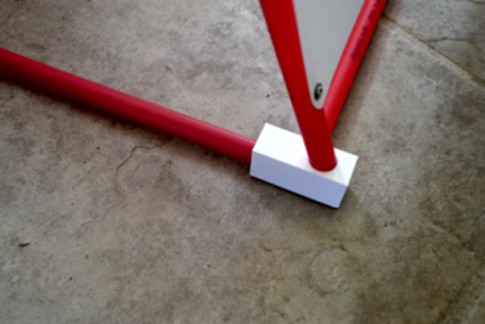 WAIT! Can I make small “sandwich board” signs with that 12" x 11’ of material? Think so. Ended up with PEX (never used this stuff before) household water tubing for tubes because it is small, light & cheap. Designed and 3D printed the connectors. Used a ruler on the top, wanted just a wood one but this Lowes model was only $6 and big. Conversation piece. They come all apart in a modular fashion and will take very little space in the car. Plastic banner stuff is riveted to the PEX. Each one weighs about a pound.